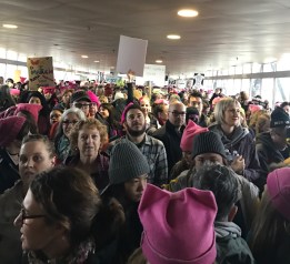The Metro Station was clustered with protesters, both male and female, on the morning of the Women’s march.