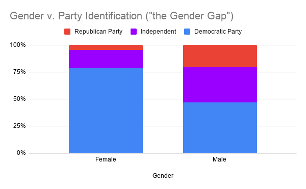 Overall, our results confirm that the political scientific phenomenon known as “The Gender Gap” is clearly exhibited in the IA population and can explain the underperformance of Republican candidates across the board in our electorate.