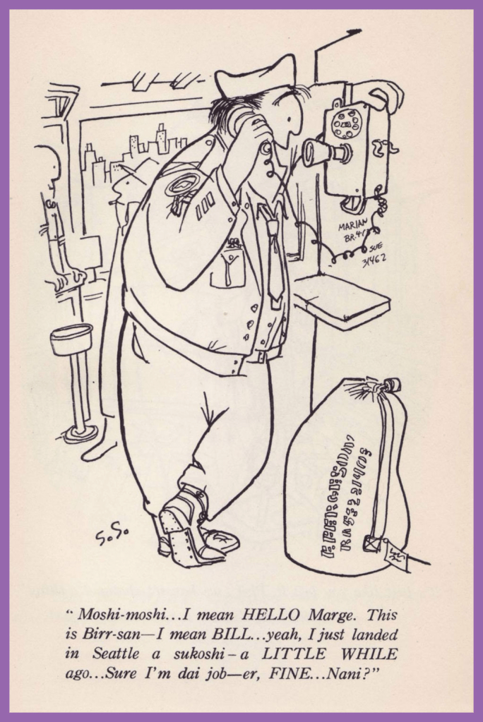 Caption: A political cartoon created by Shel Silverstein portraying an American soldier in the Japanese Occupation era near the end of World War II.